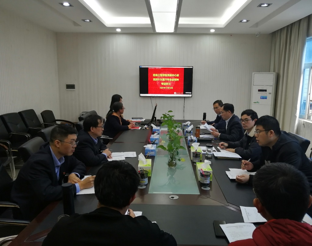 本网讯(杨若琪)11月16日下午,信息工程学院召开党委中心组(扩大)会专题学习党的十九届六中全会精神,学院全体党委委员和党支部书记参加了专题学习,会议由学院党委书记刘晓军主持。