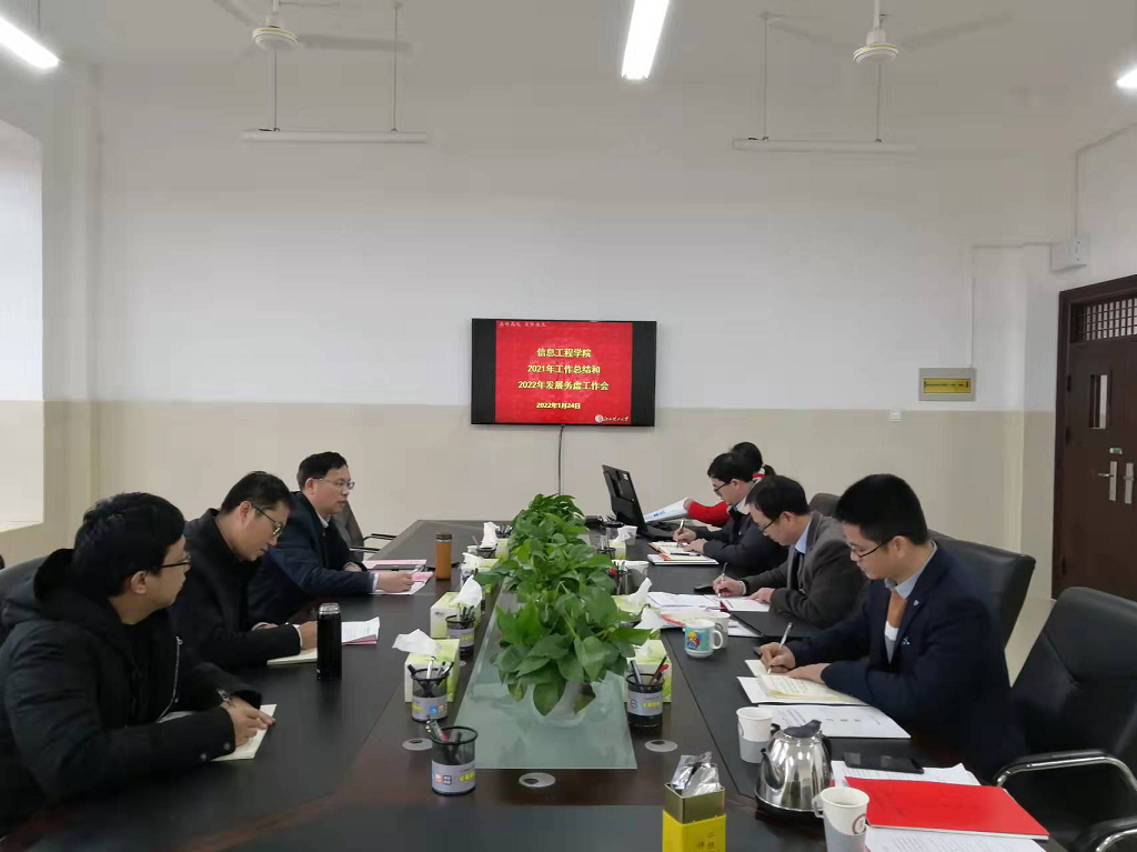 2022年1月24日上午,信息工程学院党政领导在三江校区九章楼305会议室召开2021年工作总结和2022年发展务虚工作会。学院党委书记刘晓军、院长杨书新、党委副书记王吉源、副院长徐中辉、许春冬参加会议。