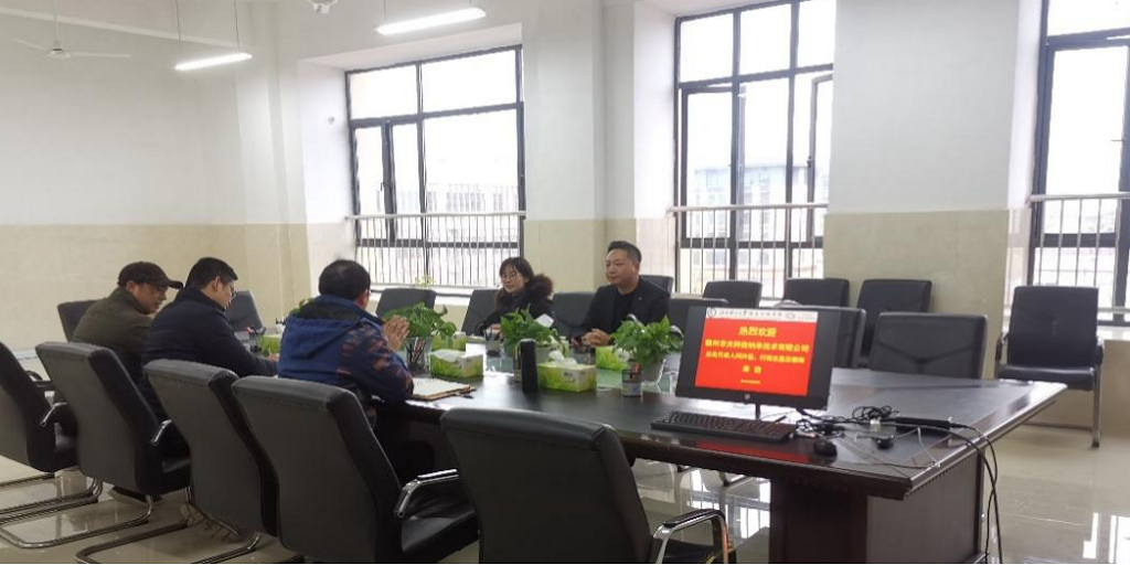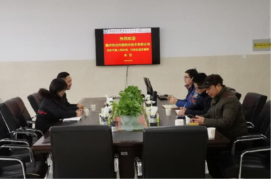 本网讯(徐中辉)2022年2月22日下午,赣州市光科微纳米技术有限公司总经理闫兴伍、行政总监巫肇梅一行来访?;崆?,信息工程学院院长杨书新与闫兴伍、巫肇梅进行了沟通交流。信息工程学院副院长徐中辉、许春冬,光电信息科学与工程教研室副主任肖庆生等参加座谈会。