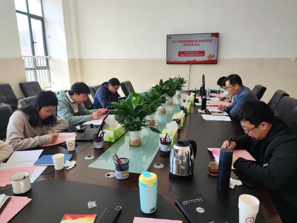 本网讯(李建润 胡雅静) 3月8日上午,信息工程学院机关党支部在九章楼305会议室召开2021年度组织生活会,机关党支部全体党员参加会议,会议由支部书记王吉源主持。