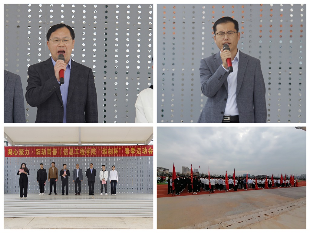 本网讯(杨若琪 张宇龙)为充分发挥体育教育在人才培养中的重要作用,推动学生体育锻炼和文化学习协调发展,全面提升学生综合素质,3月12日,信息工程学院于三江校区田径场举办“凝心聚力,跃动青春”春季运动会。学院党委书记刘晓军,党委副书记王吉源,党建组织员李丹及全体辅导员出席趣味运动会,运动会开幕式由学工办副主任、团委副书记胡雅静主持。