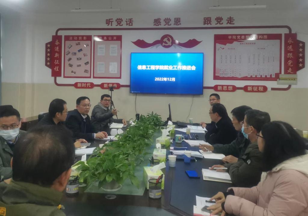 12月8日下午,为扎实推动学院就业工作,提高毕业生就业质量,信息工程学院在九章楼305会议室召开2023届毕业生就业工作推进会。学院全体班子成员、各教研室主任及毕业生辅导员参加会议,会议由院长杨书新主持。