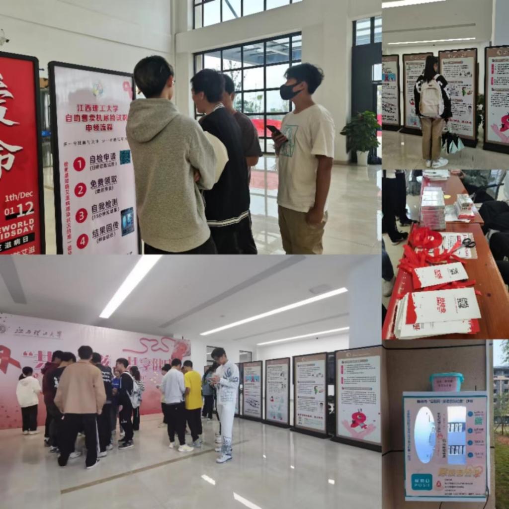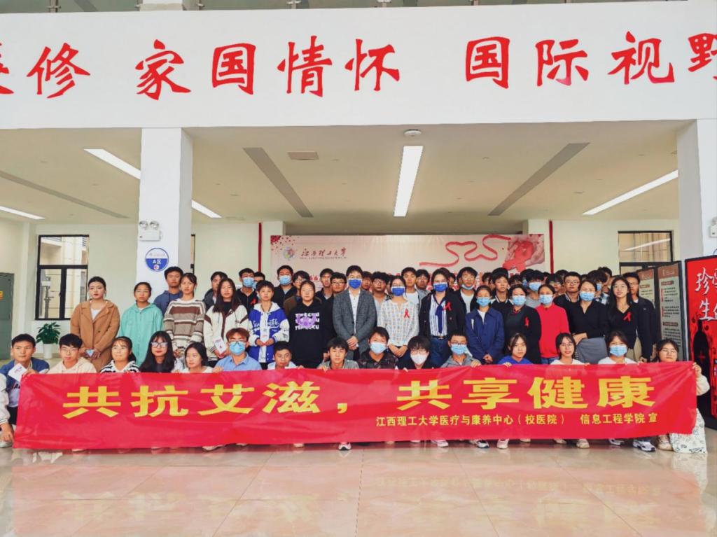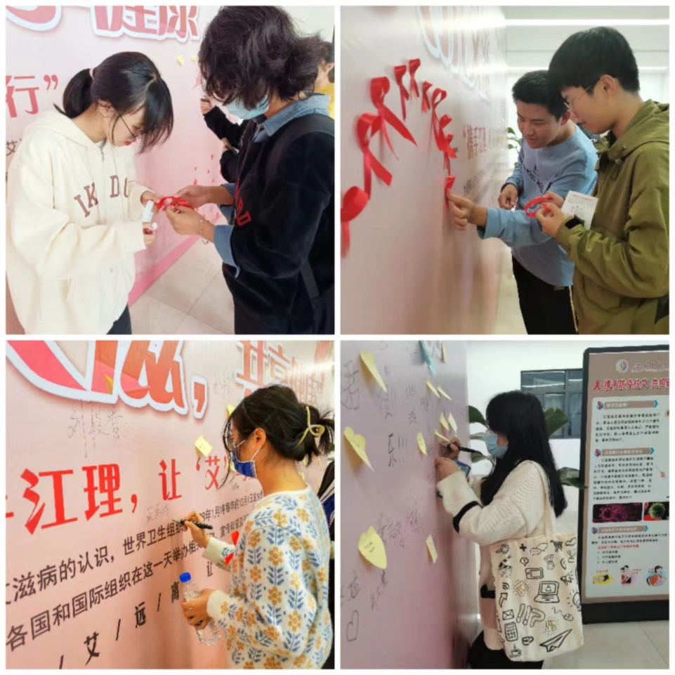 本网讯(罗嘉妮 郭伟利)为认真贯彻落实党的二十大精神,推进健康中国建设,深化校园抗艾防艾宣传教育,11月29日下午,在第35个世界艾滋病日前夕,由医疗与康养中心(校医院)主办、信息工程学院团委承办的“共抗艾滋,共享健康”主题宣传活动在三江校区三实楼一楼大厅顺利开展。我校近300名教职工、本科生、研究生参加了本次活动。