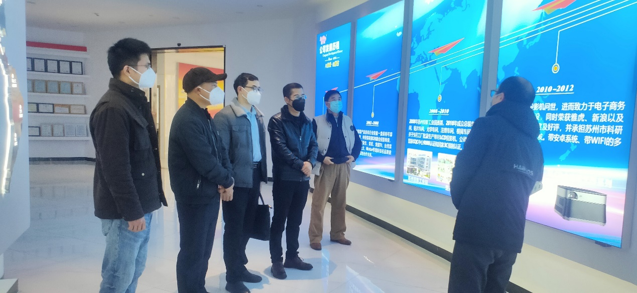 会后,徐中辉一行人深入江西轰天炮光电科技有限公司生产车间、实验室,看生产、问需求,详细了解了投影仪的生产过程、制作工艺和管理流程,与企业进一步探讨校企合作的人才培养方案。