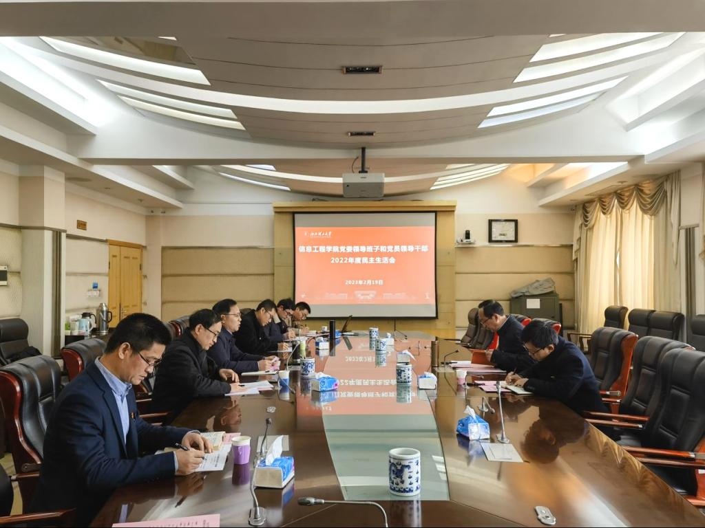 本网讯(文/李建润 图/蒋越)2月19日下午,信息工程学院党委领导班子在红旗校区原行政楼第二会议室召开2022年度民主生活会。校党委常委、纪委书记龙立福,校纪委监督检查室主任饶永星到会指导,学院党委领导班子成员参加会议,党政办主任、专职组织员、党支部书记列席会议?;嵋橛裳г旱澄榧橇跸鞒?。