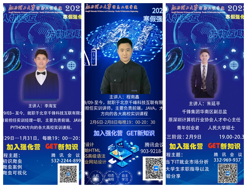 为了持续满足毕业生就业需求,提升毕业生就业技能。信息工程学院利用寒假期间,联合北京千锋互联科技有限公司面向毕业生启动“促就业、提能力”专业技术提升冬令营活动,开设专业技术提升、职业能力培养等免费公益课,从爬虫技术、HTML、CSS高级语法、网站设计等内容,到IT就业市场分析、求职指导等经验分享,引入实战项目讲授,帮助学生提升项目实操能力,增强就业竞争力。