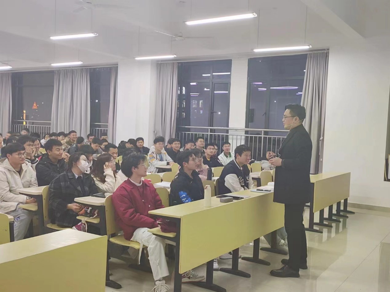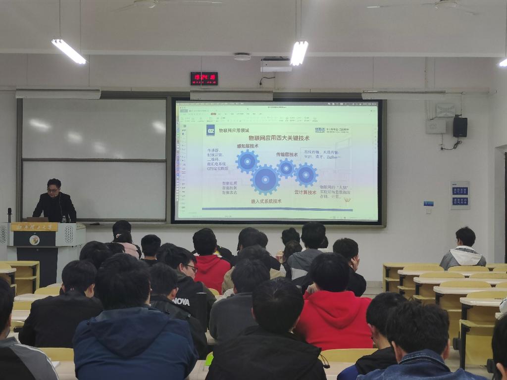 本网讯(郭伟利 曾令珍)为帮助学生了解当前物联网行业形势,对就业有更清晰的认识,3月3日晚7点,信息工程学院邀请了深圳信迎达科技有限公司湖北分公司总经理王朝,在三江校区阅道楼104教室开展以“融入物联网‘大潮’,掌控未来”为主题的专业讲座。信息工程学院2020级电子信息工程专业学生参加讲座。