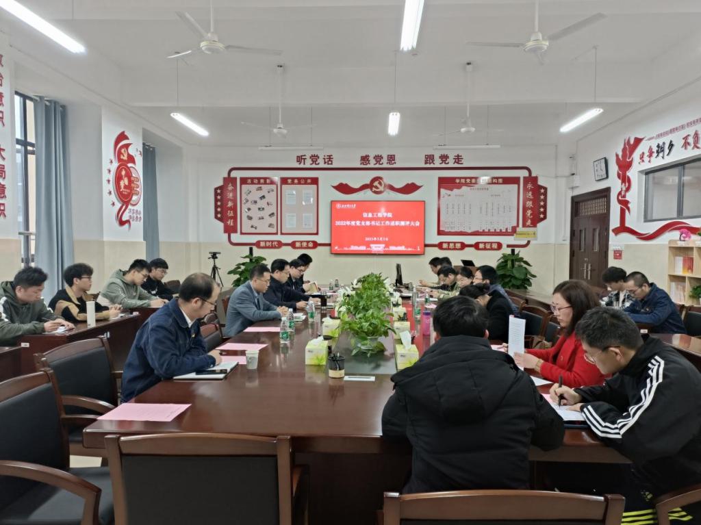 本网讯(文/李建润 图/李涛)3月3日下午,信息工程学院在三江校区九章楼305党员活动室召开2022年度党支部书记工作述职测评大会,在家的学院党委领导班子成员、全体党支部书记及党员代表参加,校党委组织部干部科副科长刘伟到会督导?;嵋橛裳г旱澄榧橇跸鞒帧?/span>