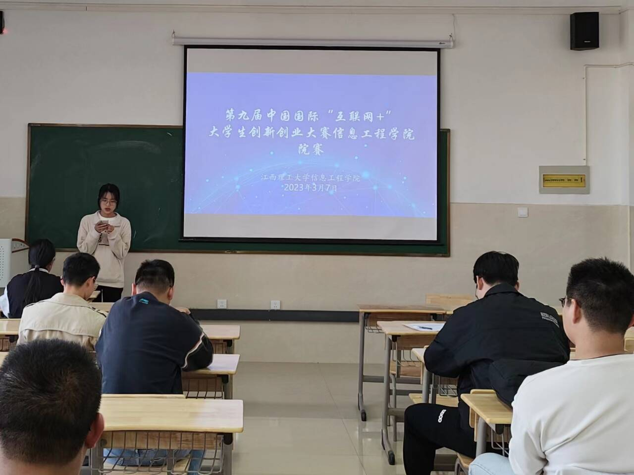 本网讯(聂俊涛 郭伟利)为激发大学生的创新创业兴趣,培养其成为“大众创业、万众创新”的主力军,3月7日,信息工程学院在九章楼316教室开展了第九届中国国际“互联网+”大学生创新创业大赛院赛。创新创业学院杨廷华老师到会指导,信息工程学院肖庆生老师、黄君洪老师以及黄红武老师担任本次大赛评委。