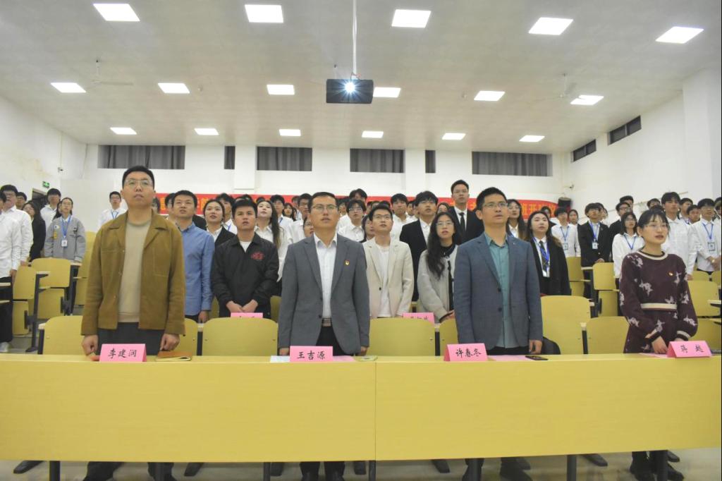 会议伊始,全体成员起立齐唱中国共青团团歌。由第二十一届团委副书记杨若琪作上一年度团委、学生会的工作总结。她表示,过去的一年中,在学院领导和各位老师的关怀下、全体学生干部的共同努力下,圆满地完成了团委、学生会的各项工作,并对上一年所举办的活动和取得的优异成绩进行总结汇报。她向新一届的团委、学生会全体成员表达了自己的期望与鼓励,希望团委、学生会全体成员能够继续奋斗,在之后的工作中尽心尽责,绘制属于他们的美好蓝图。