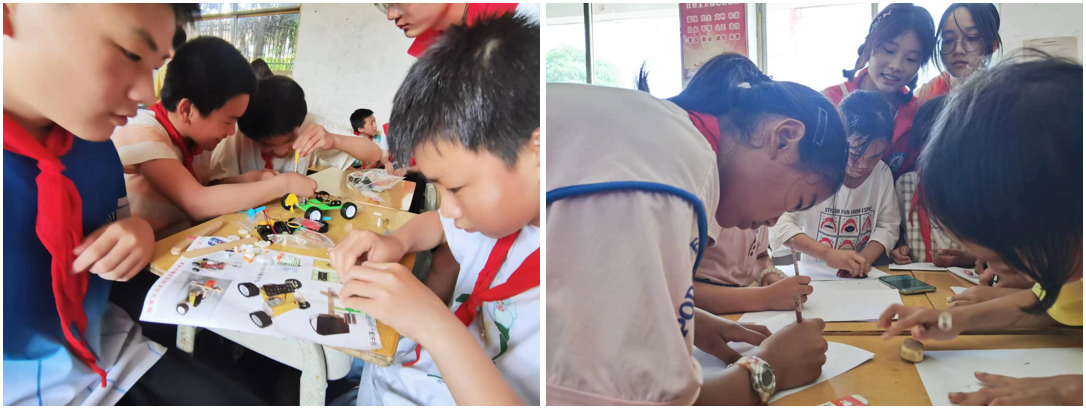 随后一部分志愿者们向小朋友们介绍如何拼装机械车玩具模型,指导小朋友们拼装零件,志愿者们通过手把手教孩子们拼装玩具车,熟悉每一个组装原理,激发了孩子们对于组装零件车的热爱和兴趣,纷纷踊跃参与其中,每个孩子都全神贯注,认真聆听,积极参与沟通交流,展现了一派热闹欢腾的场面。