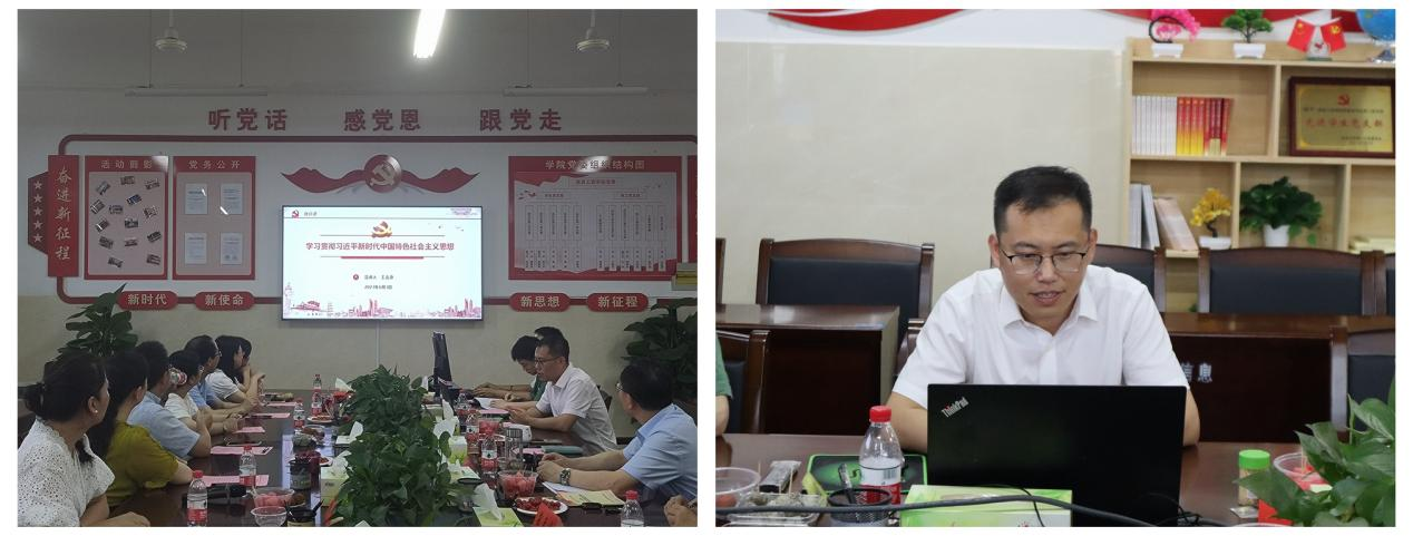 随后,学院党委副书记、机关党支部书记王吉源讲了题为“学习贯彻习近平新时代中国特色社会主义思想”的精彩的微党课。他从理论武装、主题教育的重要意义、目标要求及根本任务出发,阐释了习近平新时代中国特色社会主义思想的主要内容,强调大家要把理论学习、调查研究、推动发展、检视整改贯通起来,做到学思用贯通、知信行统一,纵深推进高质量发展。