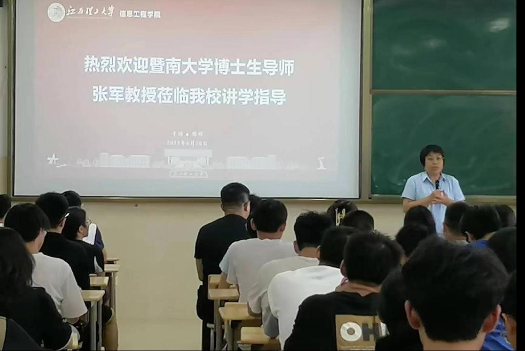 本网讯 为加强学术交流与合作,活跃学术氛围,激发学生考研积极性,6月26日下午,暨南大学理工学院光电工程系张军教授应我院邀请,在我校三江校区九章楼402教室开展2024年研究生招生宣讲,并做了题为“AR光波导的仿真设计”的学术报告。讲座由信息工程学院张小红教授主持,学院百余名师生到场聆听。