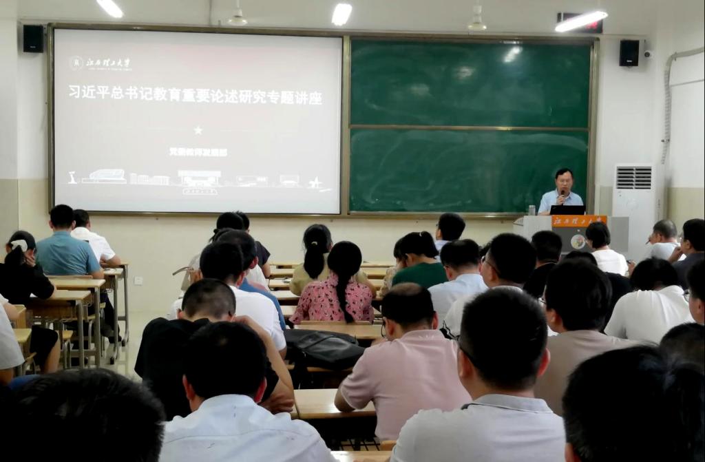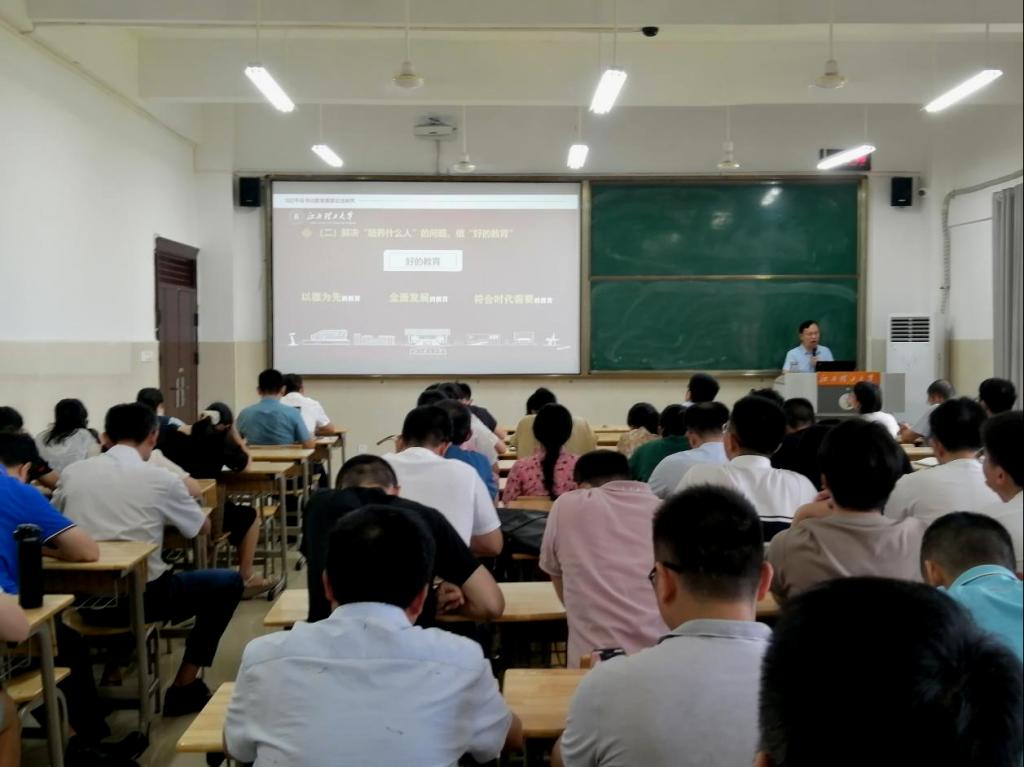 6月30日下午,信息工程学院在九章楼420教室举办了“深入学习习近平总书记关于教育的重要论述”专题讲座。此次讲座由学院党委书记刘晓军主讲,全体教职工参加了此次讲座。