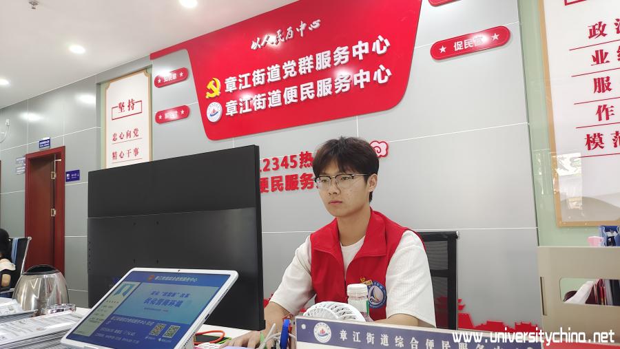 为发扬志愿者精神,切实践行全心全意为人民服务的根本宗旨,改善社区居民生活,7月6日下午,实践队员来到章江街道沙角社区开展了一系列的志愿服务活动。实践队员周怡、钱程志在章江街道党群服务中心进行了在岗服务,他们认真负责,主动帮助工作人员分担社区工作,并热心解答辖区居民来咨询的相关问题,提供一些惠民利民政策如申请公租房、困难低?;А⒊な俳?、残疾证等途径的讲解服务,认真负责、耐心细致的志愿服务获得了社区居民的一致好评。