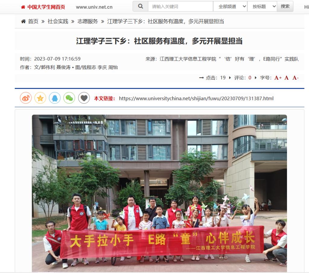 社区服务是人民群众家门口的服务,关系民生、连着民心。为充分发挥社会实践带领青年学生走出学校深入基层学习的目的,切实推动城乡社区服务体系建设取得积极进展。江西理工大学信息工程学院组织“‘信’好有‘理’,E路同行”社会实践队,前往章贡区章江街道新时代文明实践所开展了暑期“三下乡”社会实践活动。