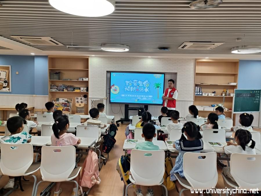 实践队员为社区幼儿园小朋友讲解防溺水知识