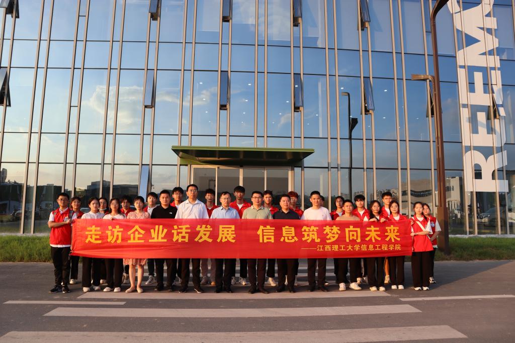 江西理工大学党委常委、组织部部长刘志刚一行也来到企业慰问信息学院“‘信’好有‘理’,E路同行”社会实践队,详细了解了实践队的调研内容以及进展情况,随后就校企共建实习就业基地召开座谈会。