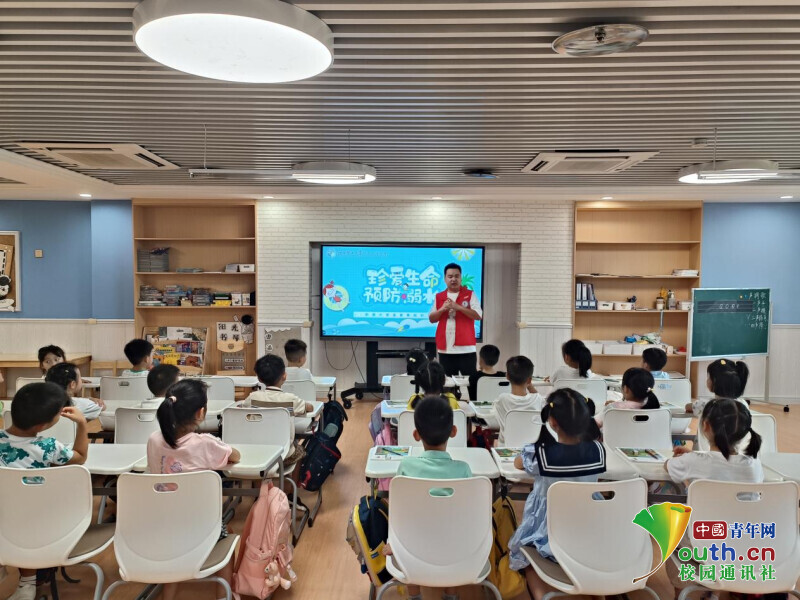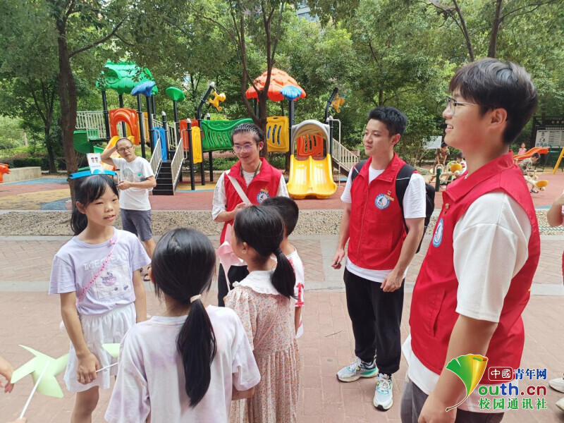 图为实践队员为小朋友进行防溺水知识宣讲。 中国青年网通讯员 周致远 摄