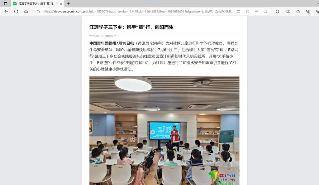 原文链接:江理学子三下乡:携手“童”行,向阳而生 (cycnet.com.cn)