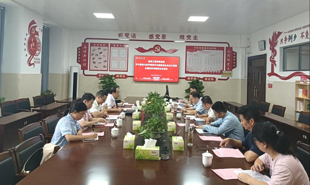 8月31日下午,信息工程学院党委在三江校区九章楼305室召开学习贯彻习近平新时代中国特色社会主义思想主题教育专题民主生活会。学校主题教育第四督导组组长、学校党委常委、纪委书记、监察专员龙立福,督导组联络员、校纪委综合办公室主任李玺莅临现场指导,学院党委领导班子成员参加会议,学院专职组织员、教工党支部书记列席会议?;嵋橛裳г旱澄榧橇跸鞒?。