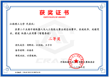 “中国机器人及人工智能大赛”是一项历史悠久、影响广泛的全国性学科竞赛。作为中国人工智能学会最早主办的竞赛之一,大赛已为我国培养了一大批“能动手”“敢创新”“可协同”的复合型人才,目前已被列入中国高等教育学会发布的《2022 年全国普通高校大学生竞赛分析报告》。我院人工智能专业学生表现优异,成绩突出,荣获机器人应用赛(智慧养老)全国一等奖一项、全国二等奖一项、全国三等奖一项。