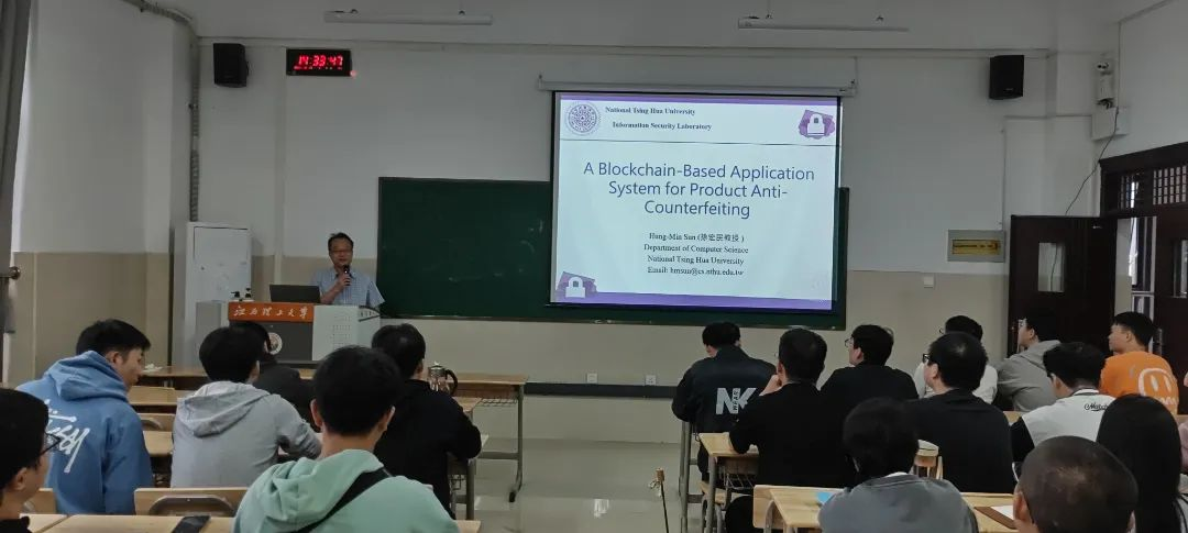 本网讯为推动我院一流学科建设,提高我院师生科研水平能力、激励学术创新、开拓学术视野,2023年10月20日,受我院邀请,台湾清华大学教授、著名信息安全学者孙宏民在我院九章楼315教室作了题为“区块链系统在产品防伪中的应用”的学术讲座。我院张小红教授、巫光福副教授,以及80余名的本科生和研究生参加了讲座。