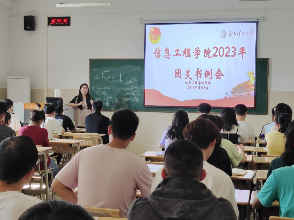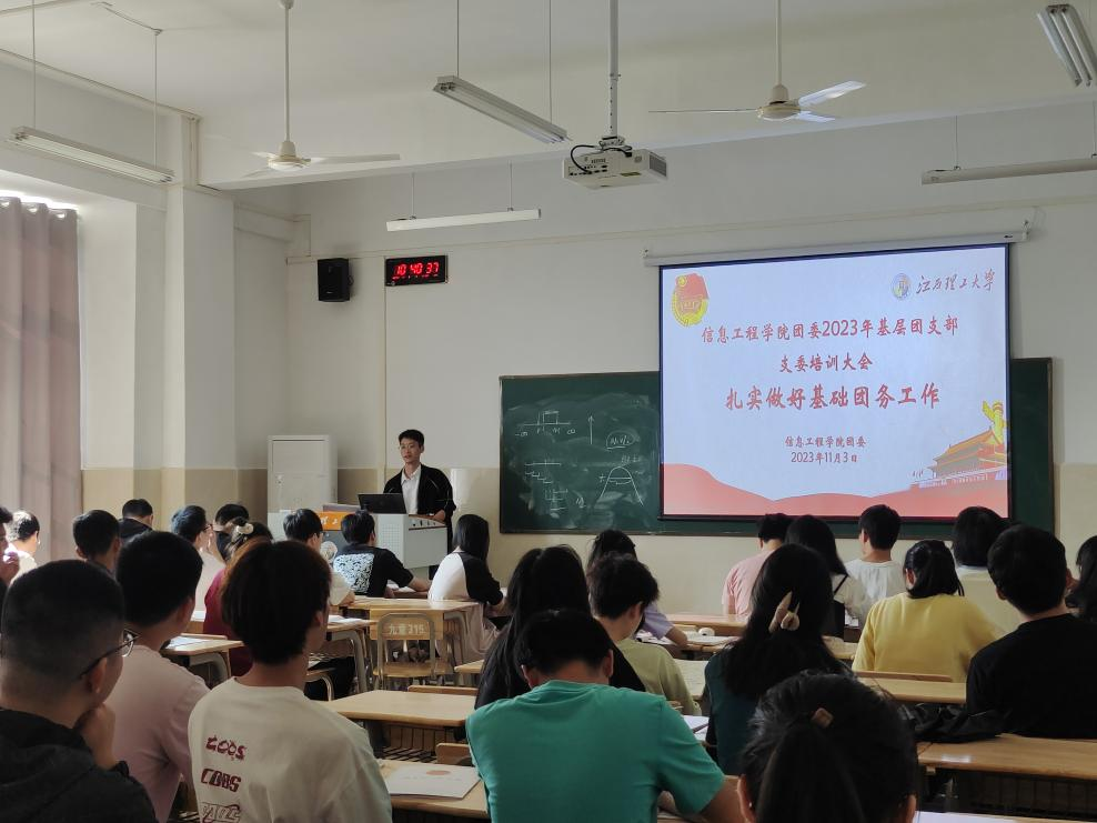 为贯彻落实高校共青团深化改革的工作要求,加强学院团委基层团组织建设,提高团支部书记、委员的理论水平和履职能力,切实增强团支部引领力、组织力、服务力,进一步提升团员队伍的先进性,11月3日上午,信息工程学院团委在九章楼315教室组织开展2023年基层团支部支委培训大会,学院团委书记胡雅静、兼职辅导员李廷,学院二十三届团委、学生会学生干部、全体团支部书记、委员参加会议。