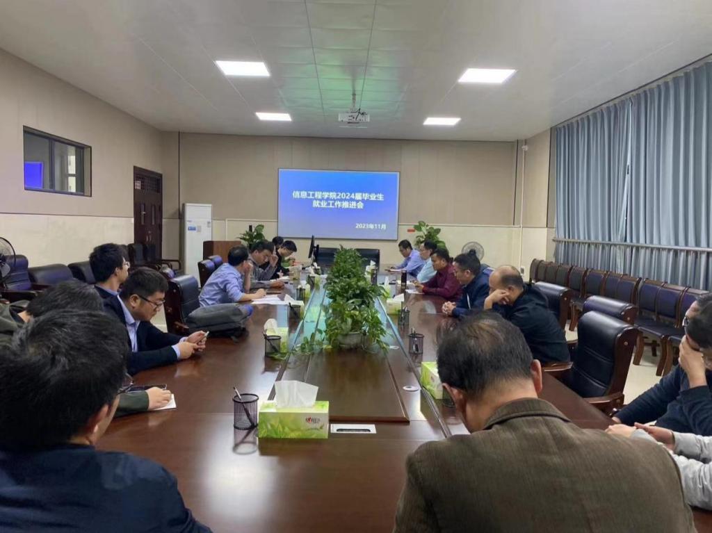 为进一步推进2024届毕业生就业工作落实落地,提升学院就业服务管理工作水平和毕业生就业积极性与主动性,促进毕业生高质量充分就业,11月7日下午,信息工程学院在九章楼303室顺利召开2024届毕业生就业工作推进会,信息工程学院党委书记刘晓军、院长杨书新、党委副书记王吉源、就业辅导员申黎、全体教研室主任、毕业班辅导员与班主任参加了此次会议,会议由学院党委副书记王吉源主持。