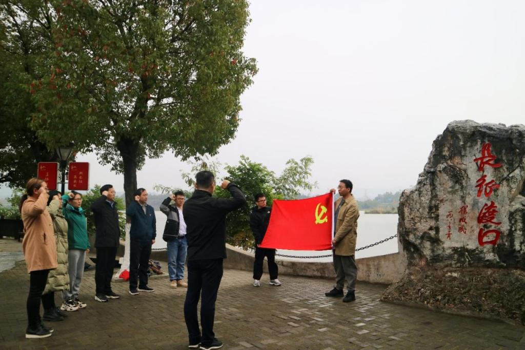 全体党员在中央红军出发旧址(中央红军长征出发第一渡口前),重温入党誓词,深切缅怀革命先烈。