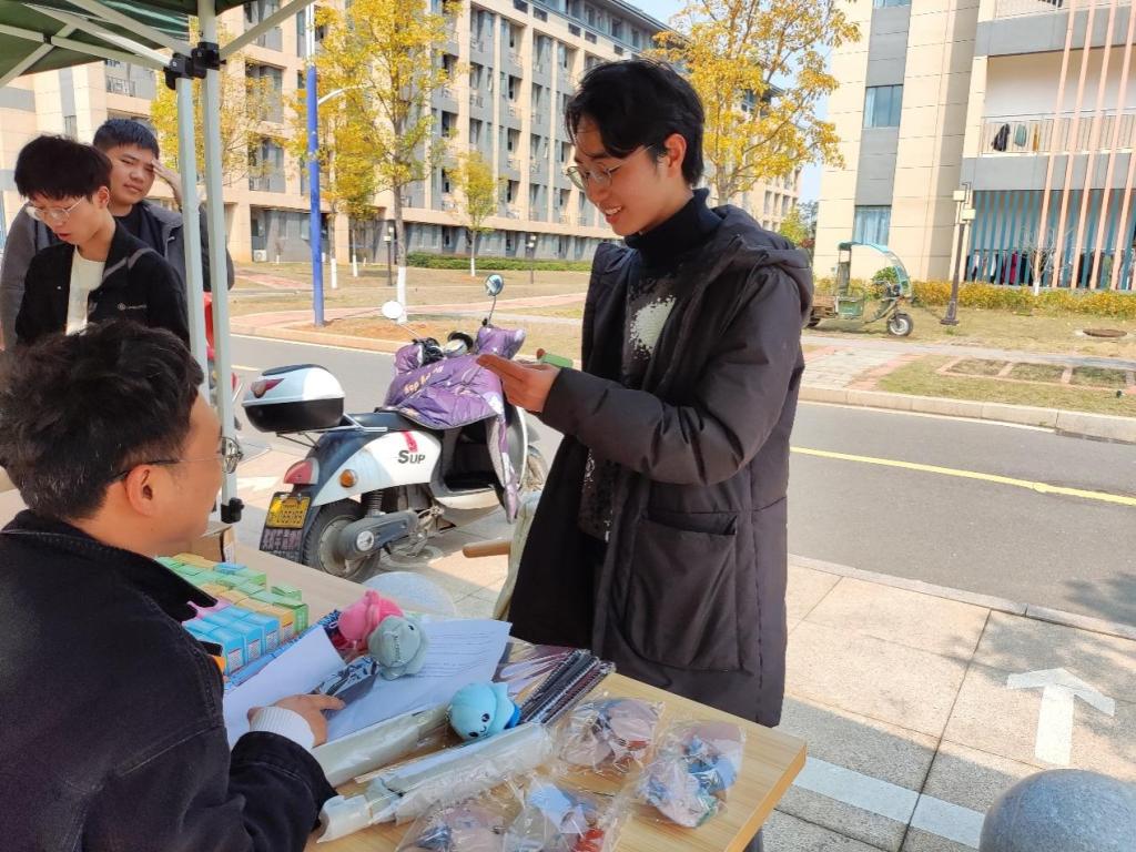 在东区食堂,志愿者们也早早支起了摊位,准备好了各式各样的趣味活动,例如“雷锋知识问答盲盒”“雷锋精神我传递”等。活动一经开启,前来参与的同学便络绎不绝,在“雷锋知识问答盲盒”游戏环节中,参与的同学们首先抽取了一张卡片,再对卡片上有关雷锋的知识问题进行回答,回答正确的人可以获得一个卡通笔记本;而“雷锋精神我传递”中,则需要参与的同学陈述一段雷锋所说的名言或事迹,并简单谈谈自己的感悟。游戏进程中,现场被一片欢声笑语所充斥,有同学认真谈对雷锋精神的感悟,有同学回顾自己的志愿服务经历,也有同学苦思冥想雷锋同志的名言。参与活动的曾令珍同学说道:“我为人人,人人为我,志愿服务的道路上总有人步履不停,这次活动不光让我对雷锋精神有了更深刻的了解,也让我对无私奉献、舍己为人的志愿精神和爱国励志、求真力行的青年使命充满敬意”。
