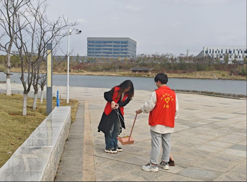 活动当天,信息学院青年志愿者协会的志愿者们在唐龙公园的河边集合,进行名为“争当河小青”的志愿清理活动,他们身穿着红马甲,手拿清洁工具,化身?;せ肪?/span>、清理河滩垃圾的“环保卫士”。每个人都仔仔细细沿着河滩捡拾垃圾,小到碎纸屑、烟头,大到易拉罐、塑料瓶等等全部收入“囊”中。奉献其中、磨砺其中、成就其中,信息工程学院的“红马甲”们用实际行动践行“奉献、友爱、互助、进步”的志愿服务精神。