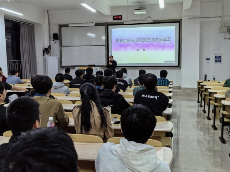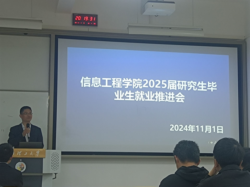 为应对就业形势变化,帮助2025届研究生毕业生进一步了解就业政策,树立正确的就业观和择业观,助力毕业生高质量就业,信息工程学院11月1日19时在阅道楼113教室召开了2025届研究生毕业生就业推进会。信息工程学院副院长许春冬、辅导员申黎、2024届优秀毕业生黄红武,以及2025届全体研究生毕业生参加本次会议。