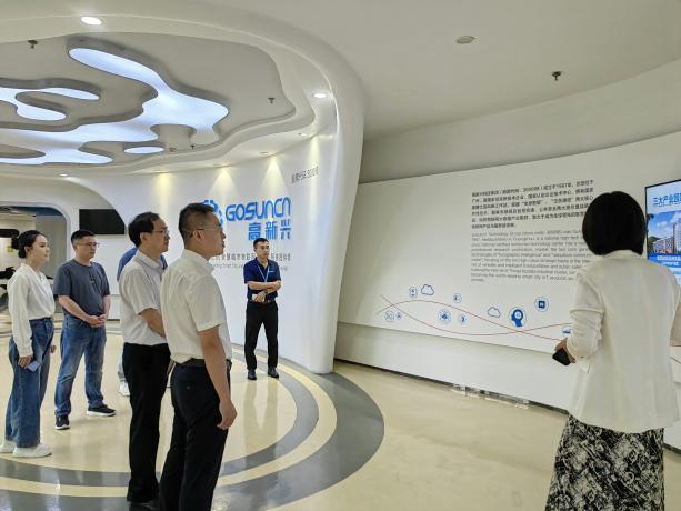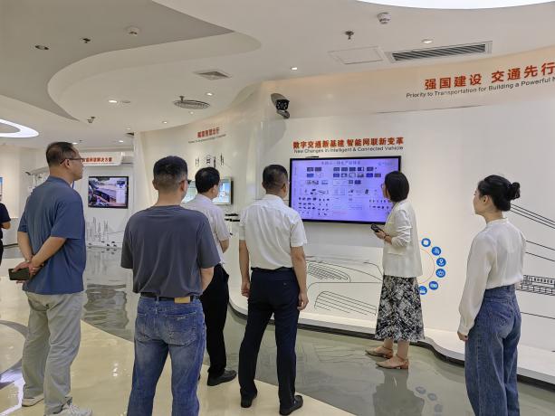 下午14时,学院一行随即赶往高新兴科技集团股份有限公司进行访问。在高新兴集团相关领导的热情接待下,代表团参观了集团科技展厅,近距离观摩了其在车载终端、轨道交通、电子车牌、车路云一体化、公共安全等领域的先进技术成果和创新解决方案。参观结束后,双方进行了座谈交流,就技术发展趋势、人才培养模式、产学研协同创新等话题交换了意见,并就未来潜在的合作方向进行了初步沟通。座谈交流结束后,院企双方合影留念。