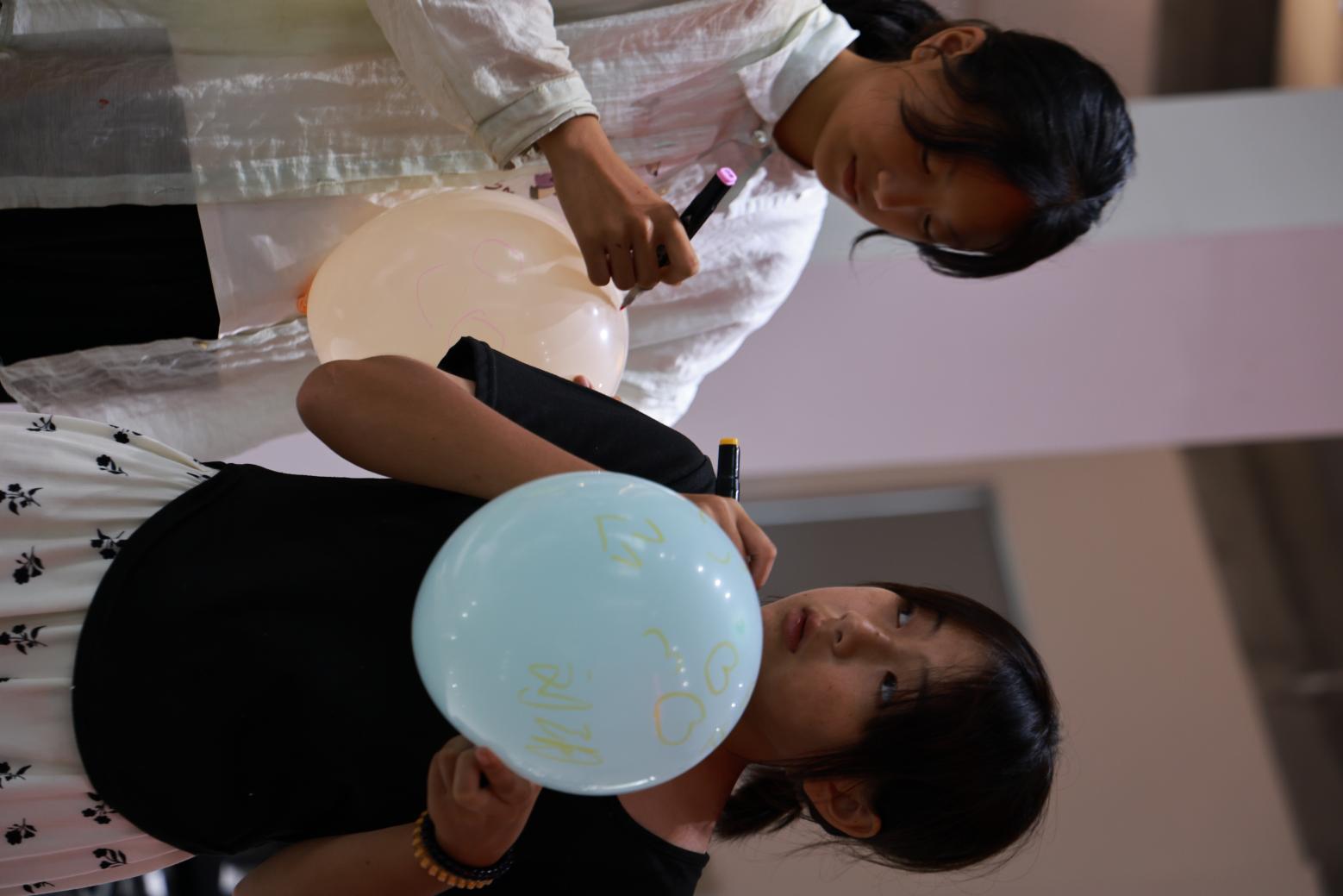 图为实践队员与孩子们进行互动游戏 李展翼供图