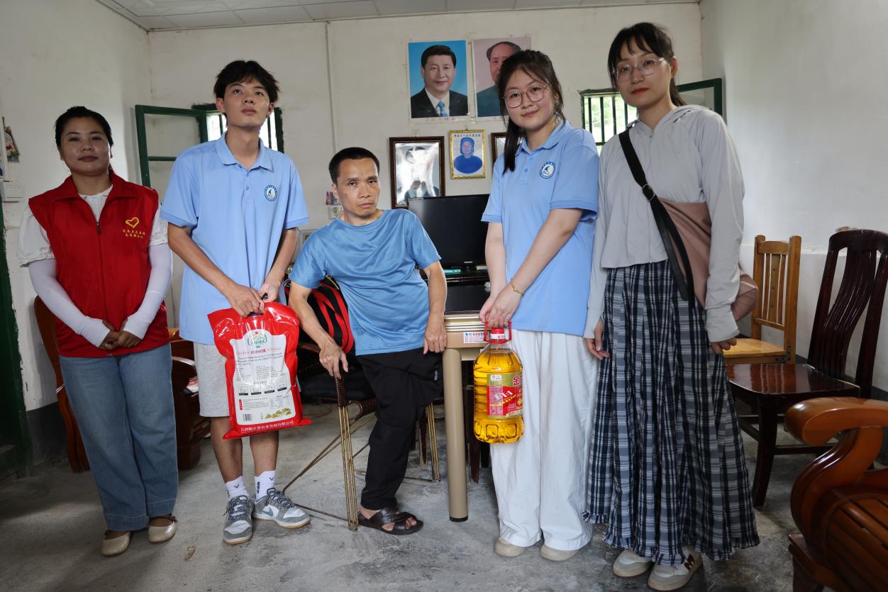 实践队深入走访慰问脱贫户等困难群体,用脚步丈量民情,用真心倾听诉求。农家院落里,青年身影忙碌穿梭,将政策关怀转化为具体行动:为独居老人、残疾家庭送去油米,为留守儿童设计趣味游戏、送上精美礼物……这些看似微小的举动,却如春风化雨般夯实了乡村治理的情感根基,让“民生温度”变得可感可触。