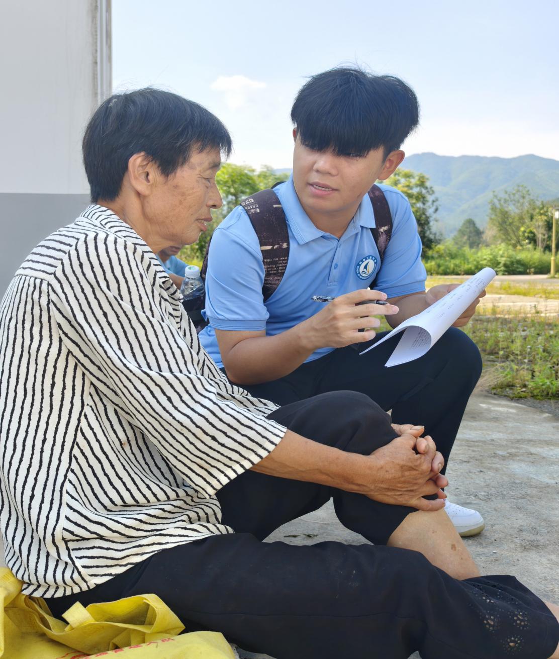 图为实践队员与村民进行数字化问卷调查 朱锦林供图