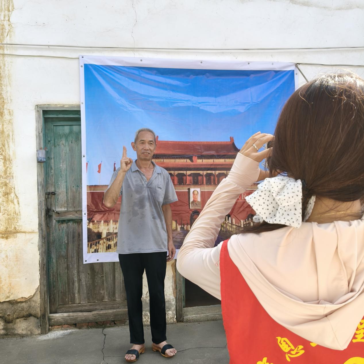 图为实践队员为七十旬老人拍照 胡宇芩供图