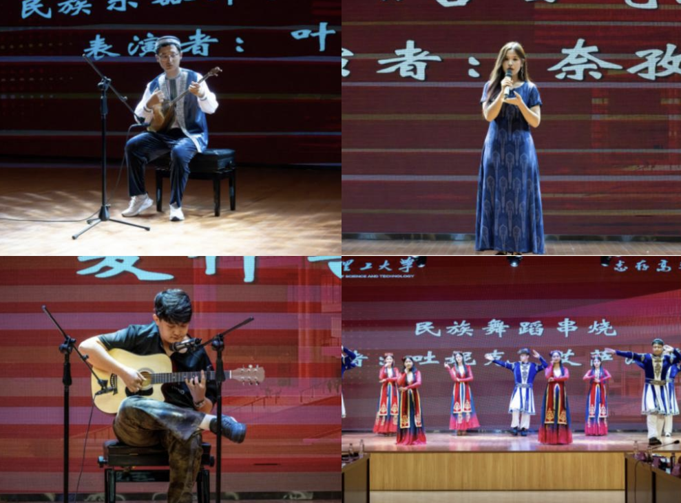 会上,还表演了丰富多彩的文艺节目。民族乐器冬不拉演奏经典曲目,悠扬旋律里融入独特民族韵味;独唱、合唱或清甜动听,或温柔治愈;民族舞蹈串烧以灵动舞姿展现少数预科学子风采,将现场气氛推向高潮;说唱节目则尽显青春张力。最后,吉他弹唱《我爱你中国》响起,全场师生不自觉跟唱,爱国情怀与民族情谊在旋律中深深交融。