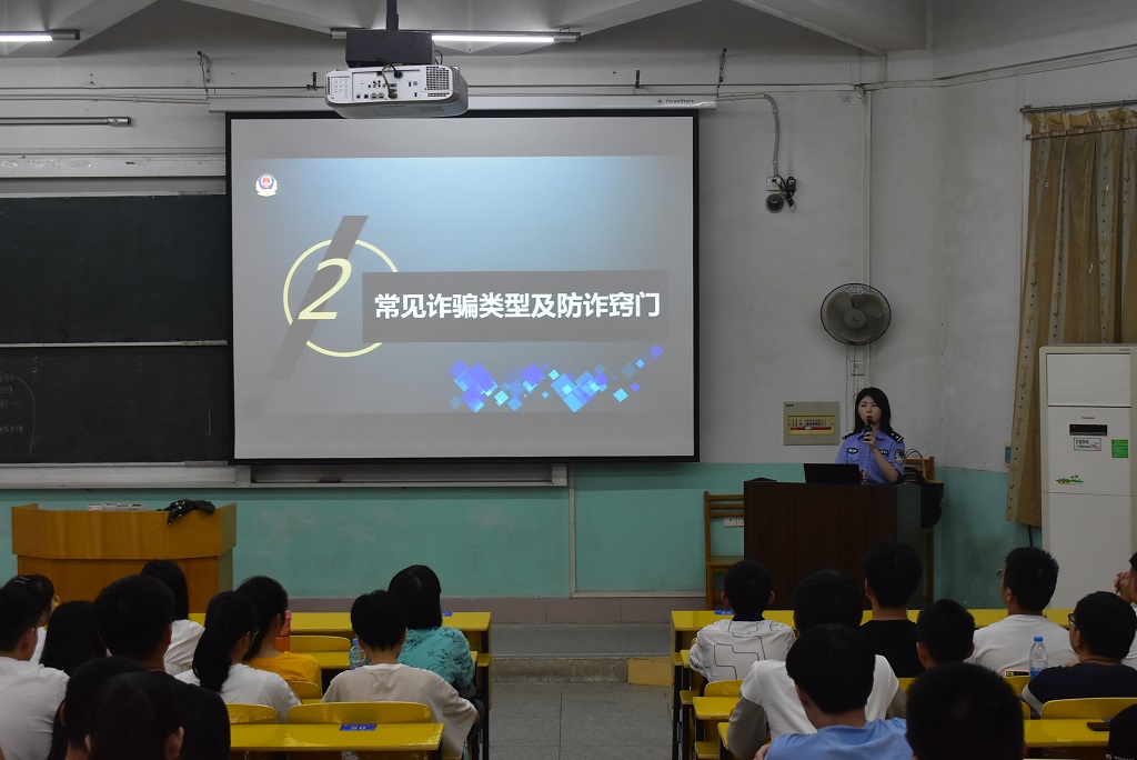 讲座中,晏主管从“什么是电信网络诈骗”这个问题入手,结合近几年发生在赣州市的网络兼职刷单诈骗、冒充熟人及公检法诈骗等真实典型案例和自己的身边发生的诈骗现象,为同学们详细讲述了诈骗分子惯用的诈骗手段,并针对不同的诈骗形式向同学们具体讲解了防范措施。接下来晏主管还指出出租、出借和电话卡不仅充当了犯罪的“帮凶”,还直接影响了自己的生活,更严重的是这是一种违法犯罪行为,会纳入个人征信系统,将来贷款买房、入学就业都会受到限制,对此,晏主管提醒同学们别再为蝇头小利一意孤行。