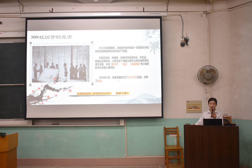 华经理则从金融知识出发,展开了与同学们的互动,调动了同学们的积极性,并借此向同学们介绍了三信,即诚信、信用、征信。并介绍了陈嘉庚替父还债的诚信故事,提醒同学们诚信的重要性?;砘骨康?,在大学期间,同学们非常容易收到校园贷的诱惑,随后她详细地介绍了校园贷的诈骗手法,并有针对性的列出了一些防骗秘籍,例如注意保护个人信息安全、不轻信来历不明的电话和短信、拒绝一切网络贷款等,为了让同学们更加深刻地了解到校园贷所带来的严重后果,华经理还结合实例向同学们展示了校园贷的恐怖之处。最后她发起呼吁,希望同学们多多关注身边网络安全的案件,提高警惕。